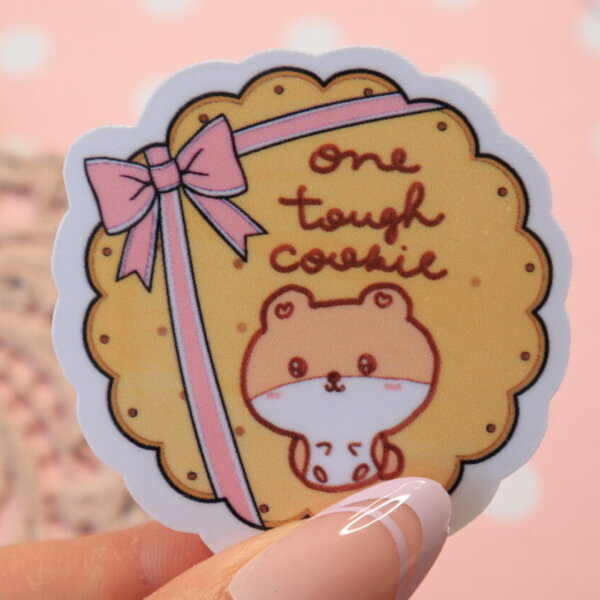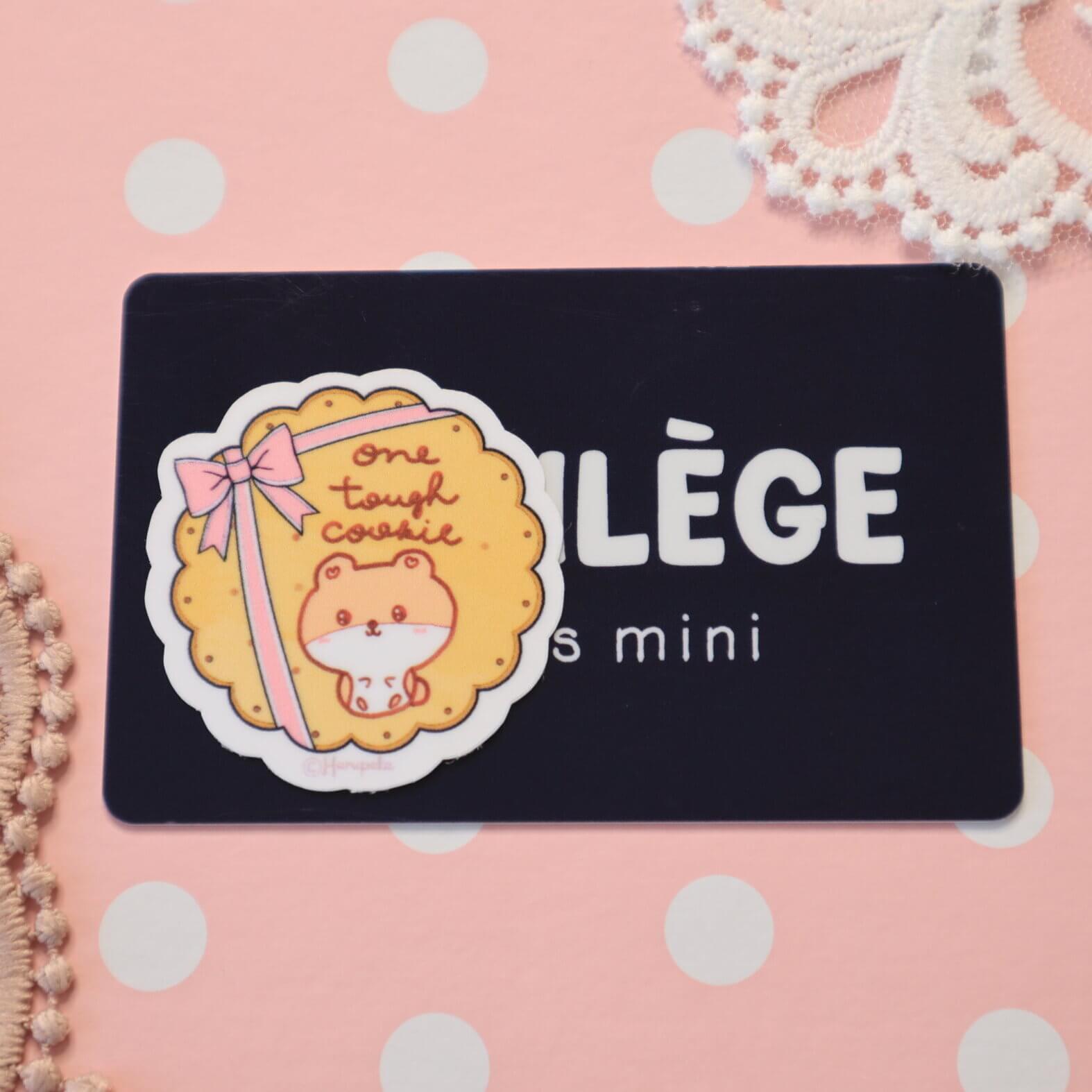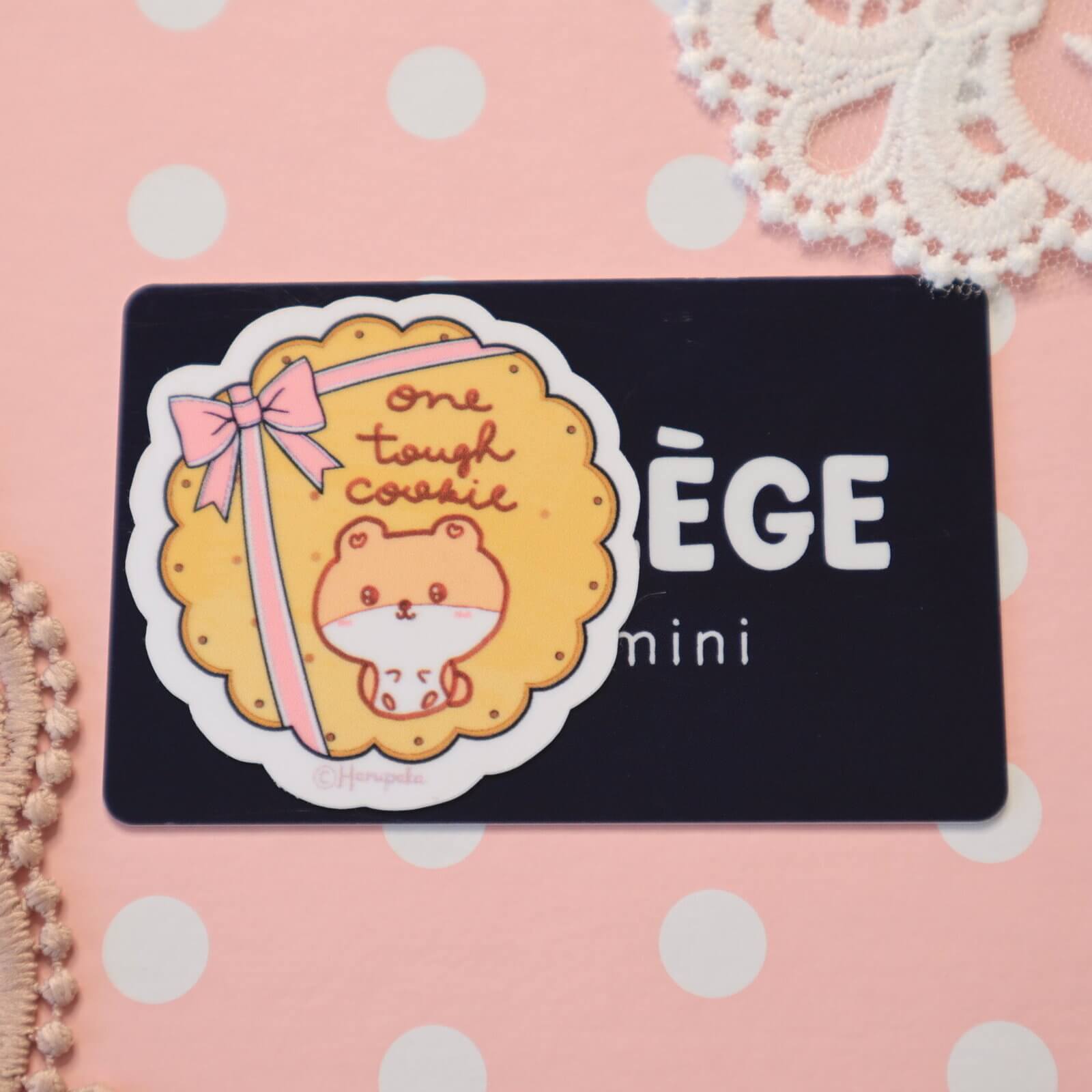 one tough cookie, tough cookie stickers, cute hamster stickers, hamster items, hamster stickers, laptop decals, critters, tiny animals, pastel color, funny stickers, credit card stickers, notebook decorations, vinyl stickers, for hamster lovers